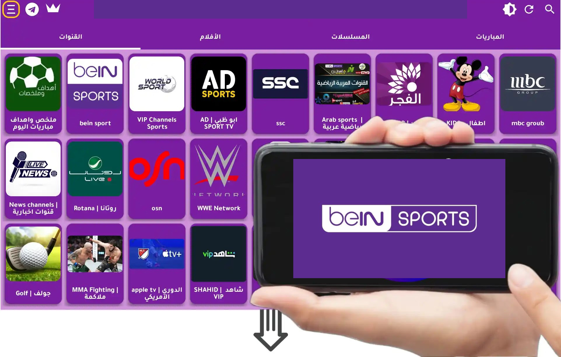 | نوع التطبيق | لمشاهدة القنوات التلفزيونية و الافلام |