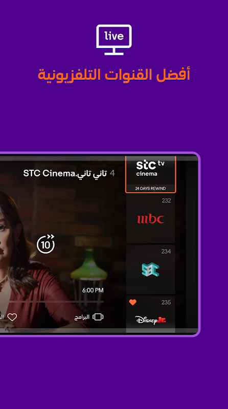 تطبيق stc tv عبارة عن خدمة بث ترفيهي تقدم باقة واسعة من أحدث الأفلام والمسلسلات الحصرية والأصلية. بالإضافة إلى القنوات التلفزيونية المجانية والمشفرة من خلال اجهزتك الذكية المتعددة. شاهد كل ما تريد وقتما تشاء مع إضافات جديدة أسبوعياً من الإنتاجات العربية والأجنبية. بالإضافة إلى برامج الأطفال والمحتوى المناسب لكل العائلة مع مجموعة من الأفلام الحصرية مباشرة بعد عرضها في السينما.