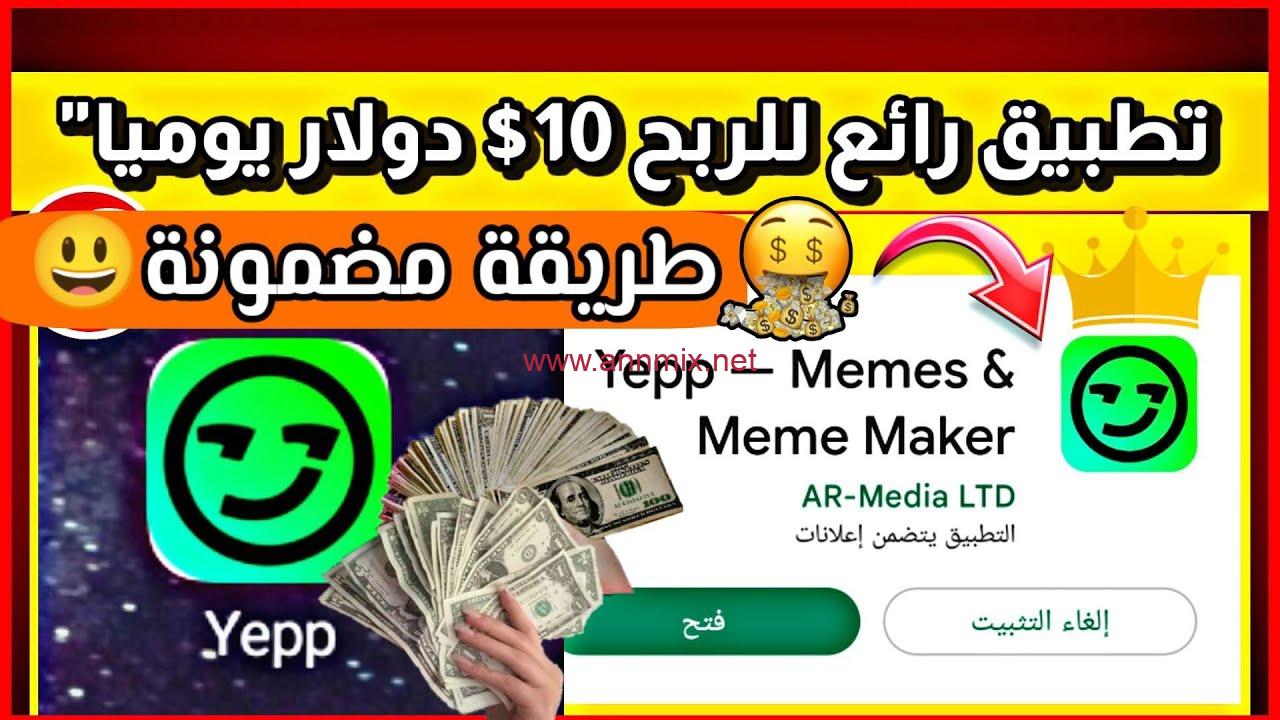 Yepp هو أول تطبيق لصانع meme. حيث يمكنك الحصول على أموال مقابل إنشاء الميمات ومشاركتها مع الأصدقاء. الآن لديك مسمى وظيفي فاخر لسيرتك الذاتية على الشبكات الاجتماعية: أنت منتج ميمي. وتجدر الإشارة إلى أن حد السحب قليل 10 دولار، بحيث بمقدورك أن تجمعهم بكل سهوله، لان التطبيق ما زال جديد وبيدفع كثير من أجل أن ينتشر.